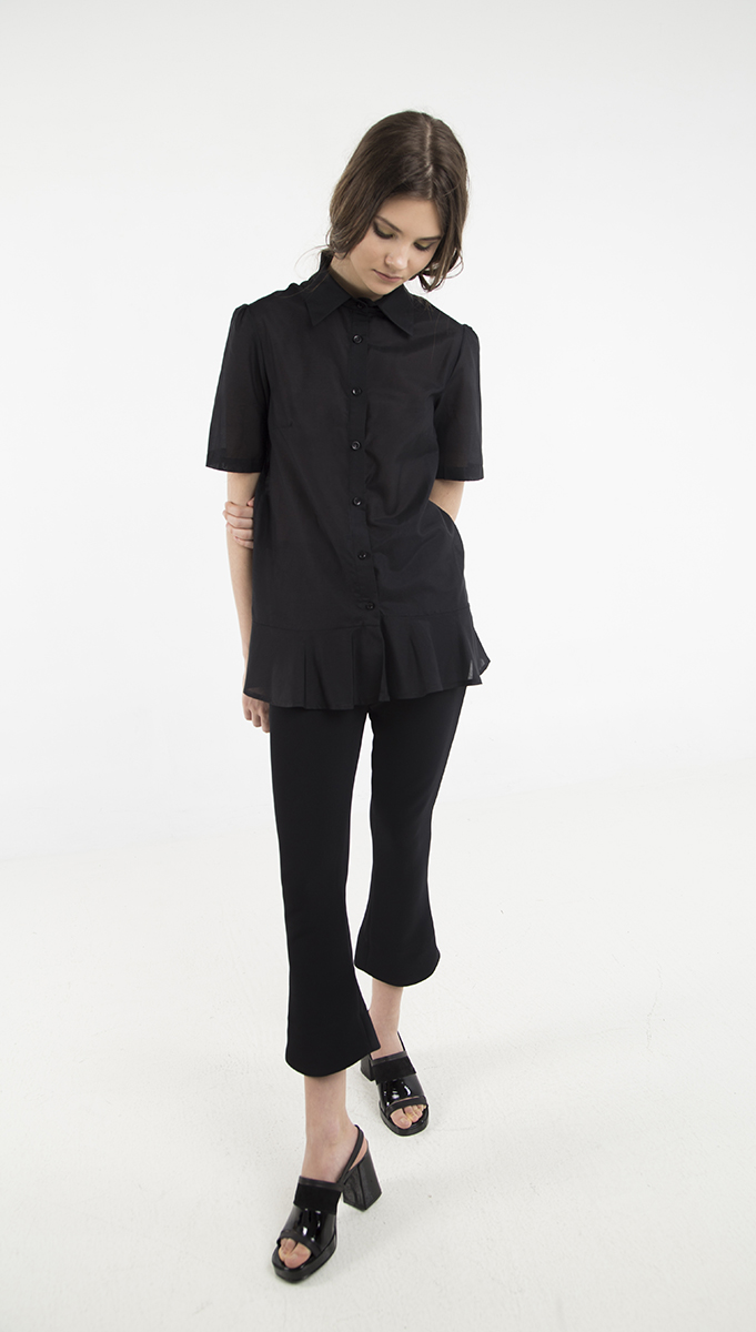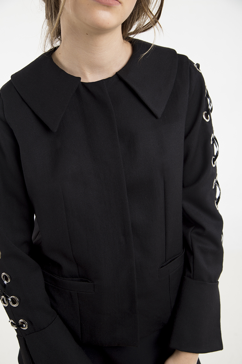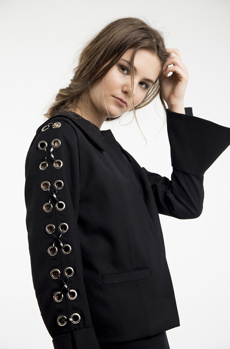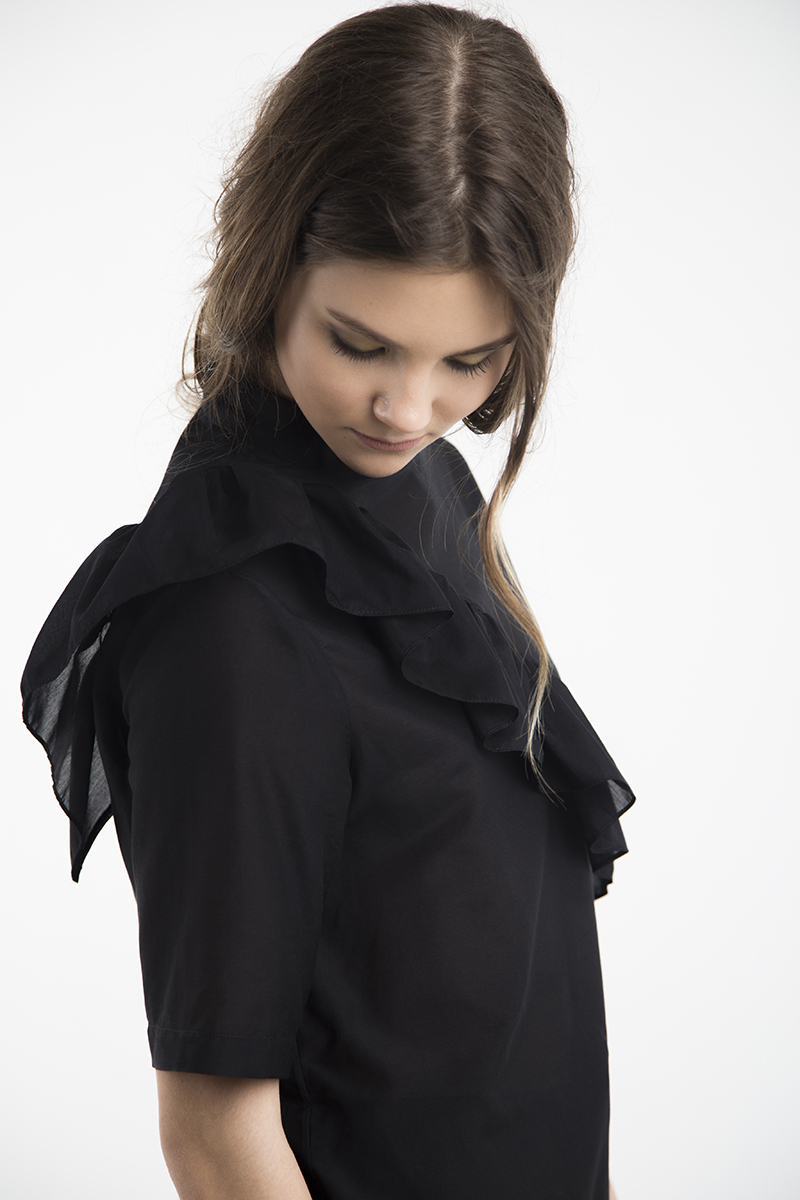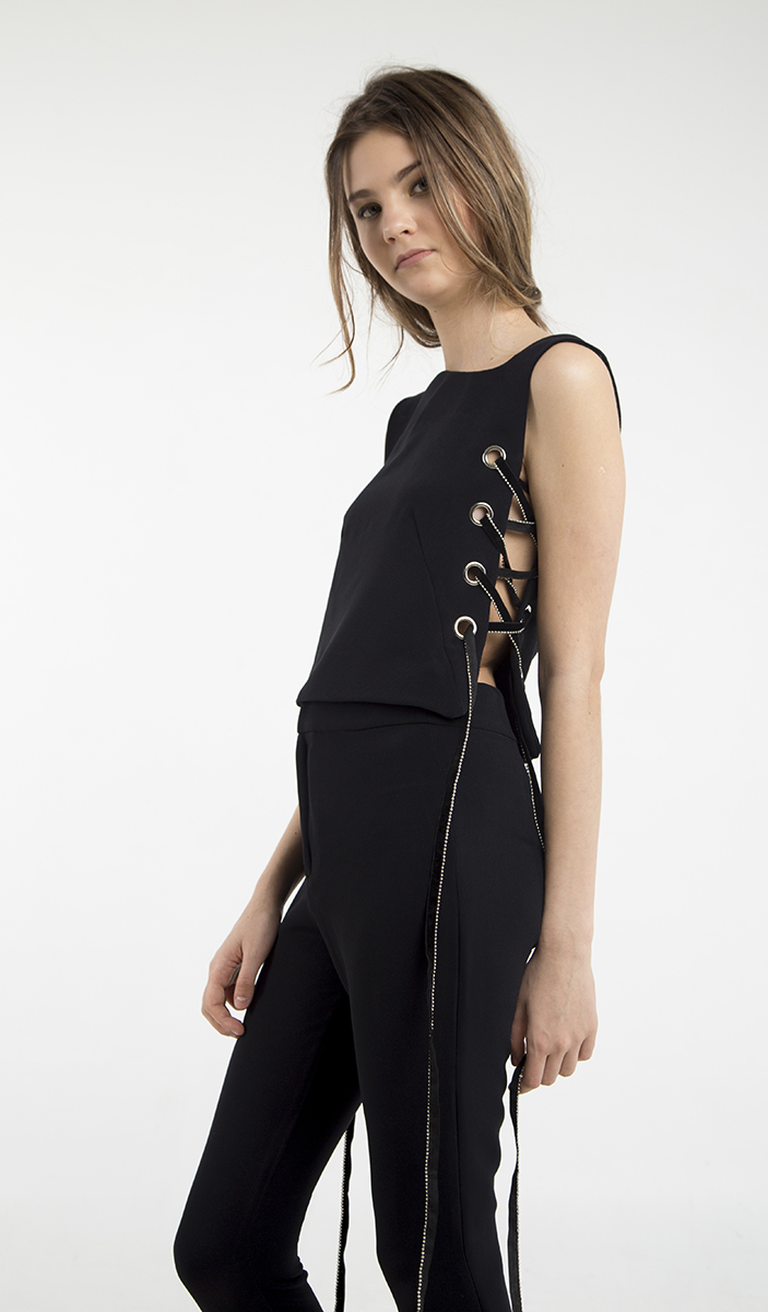 Para mí, las prendas imperdibles son el Top XX, que es una musculosa de crepe con el cuello irregular y abierta en el costado, cerrándose con un lazo de terciopelo, todas las terminaciones están cosidas a mano. Es muy elegante pero muy casual. Y también la XX jacket, porque es clásica tiene un cuello bastante grande que la hace medio romántica pero las mangas tienen una cinta de charol entrecruzada por lo ojalillos que van desde el puño hasta el hombro.