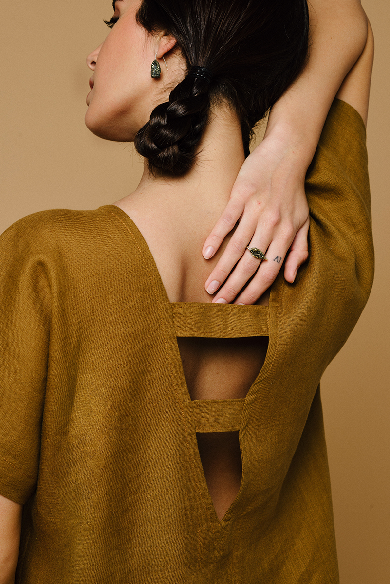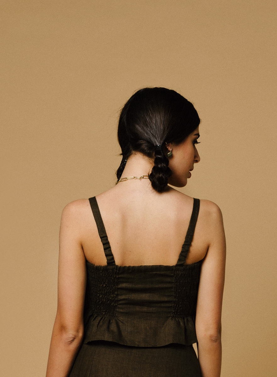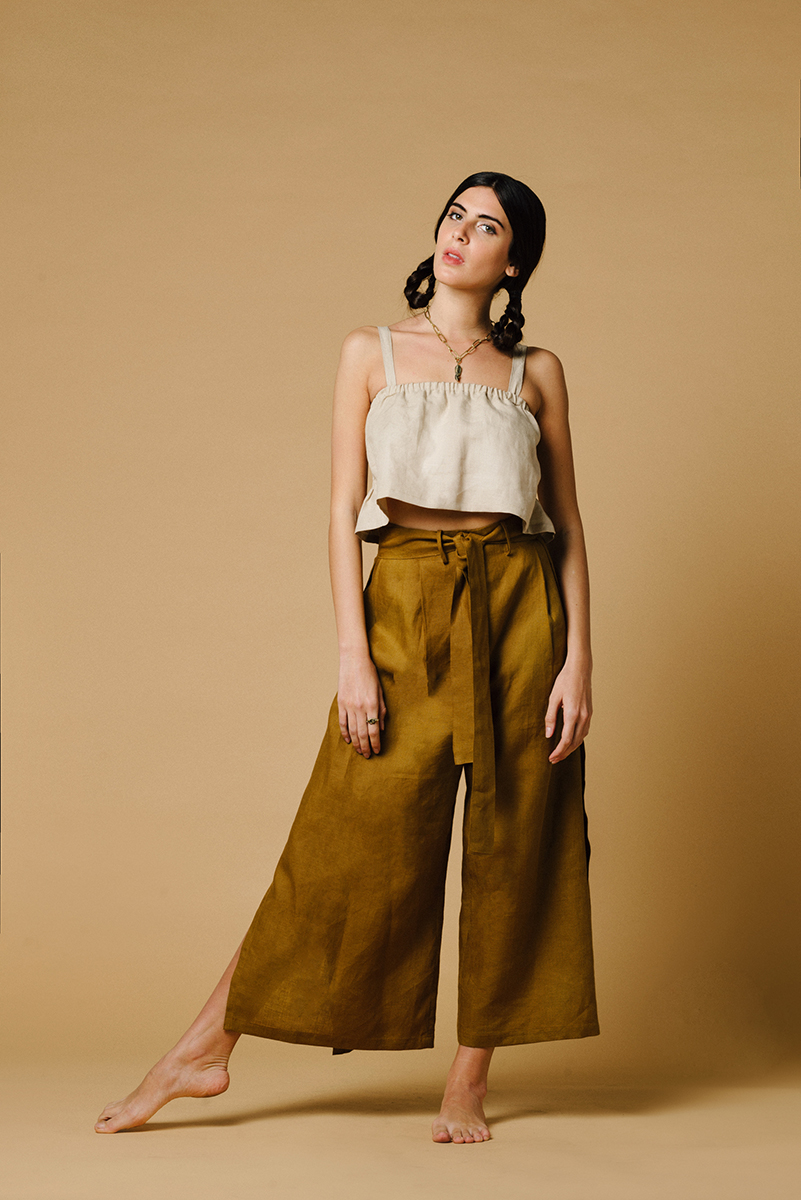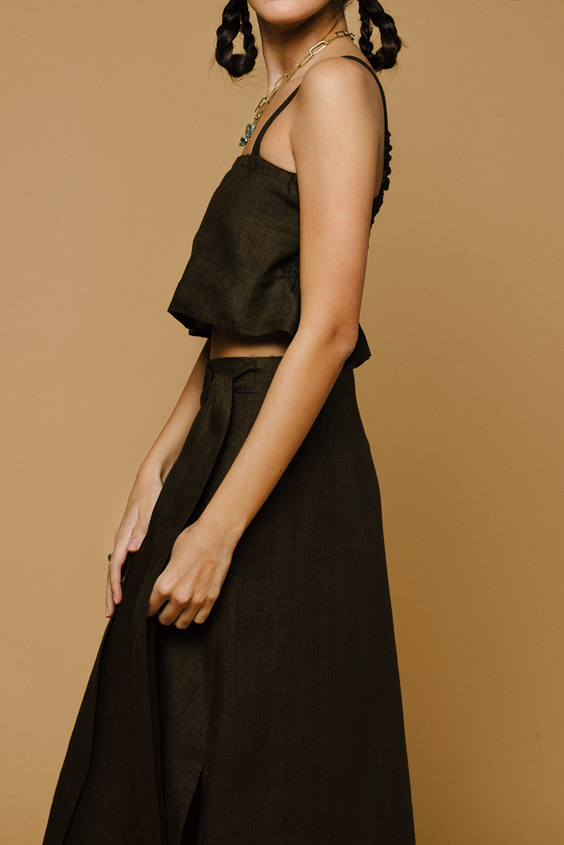 A mi entender la pollera y el Top Nunga de lino italiano son prendas para quien es simple, pero con gran carácter para vestirse, y sabe apreciar la materialidad, dado que es un lino hermoso.