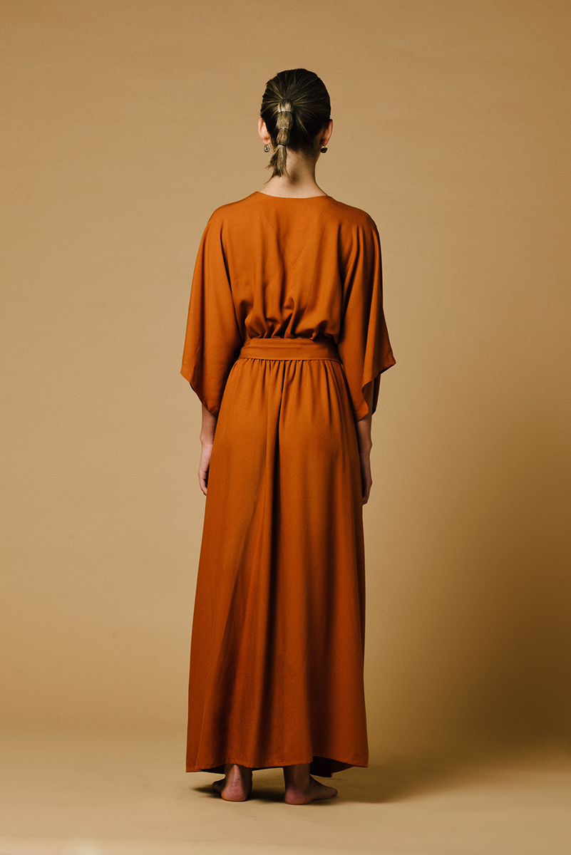 Los diseños parten siempre de una morfología simple, lineas rectas, prendas holgadas, en su mayoría talle único, y de esa linea estética se modifican o evolucionan, colección a colección, siempre manteniendo un concepto étnico, natural.