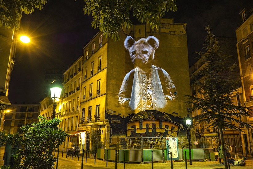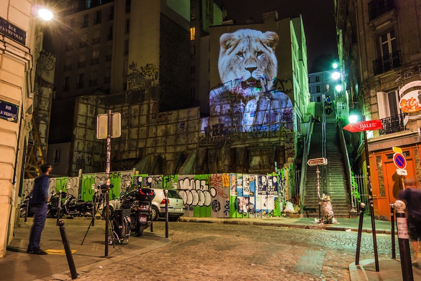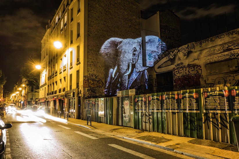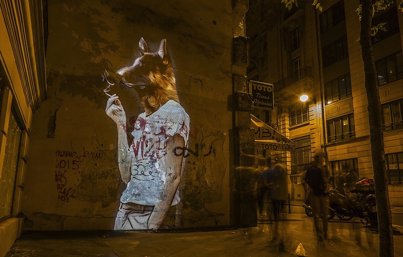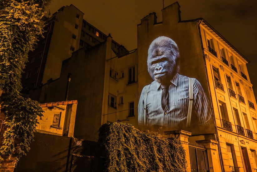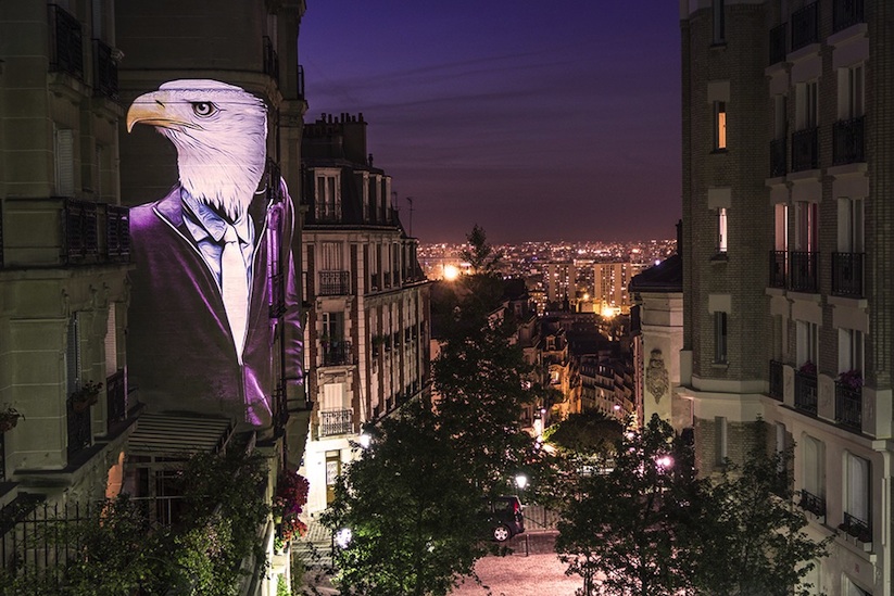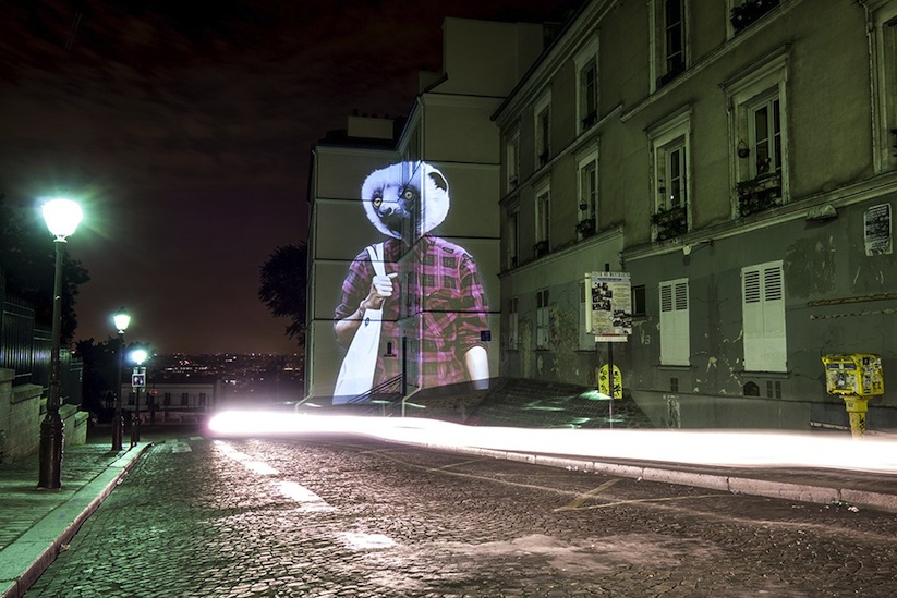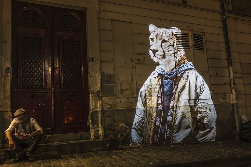 Recientemente ha creado su proyecto “Urban Safari” en el cual proyecta animales “hipsters” (elegantes y bien vestidos) por las calles de París.