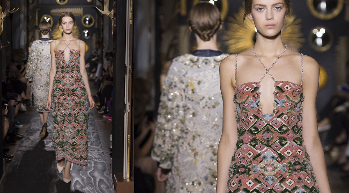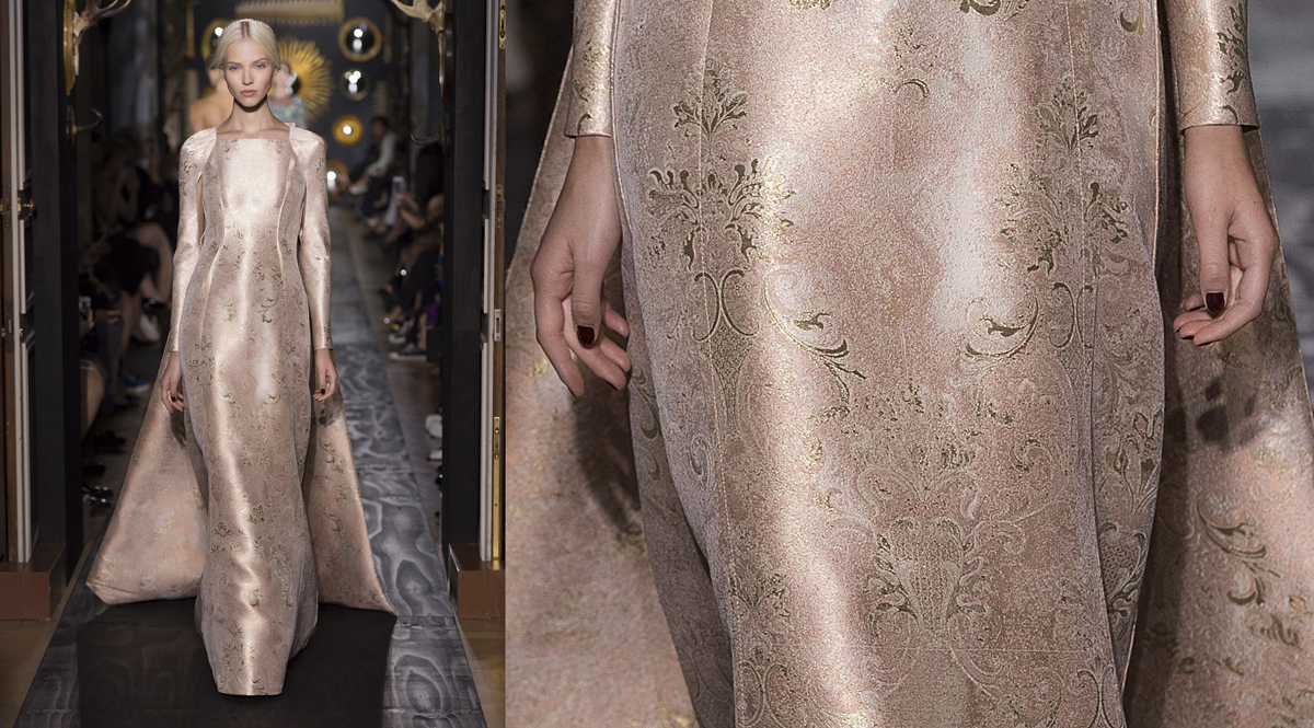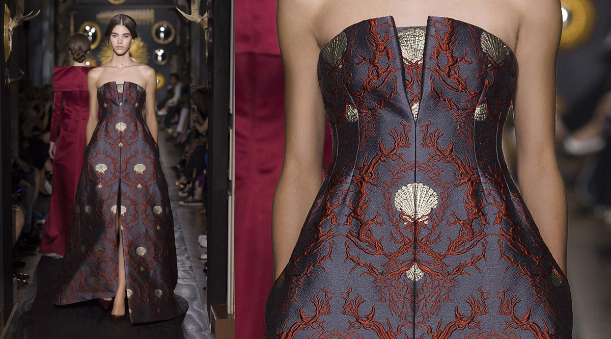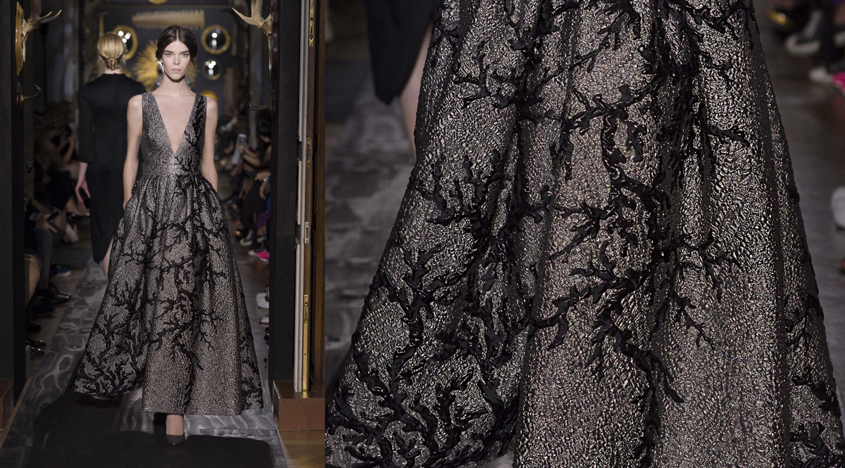 “La alta costura no es sólo para las ceremonias” insisten los diseñadores, enviando a la pasarela modelos con prendas que combinan estampas gráficas con bordados intensos y propone una utilización poco convencional de telas genéricas con géneros de lujo.