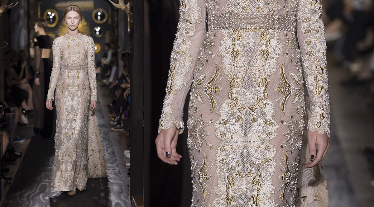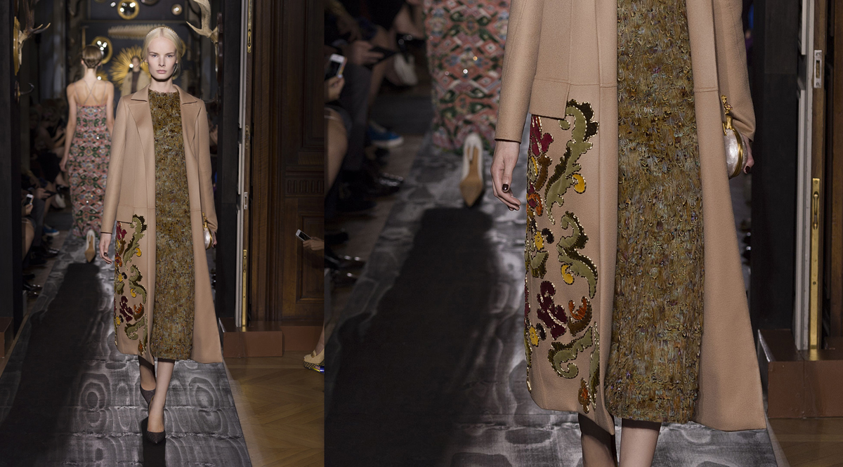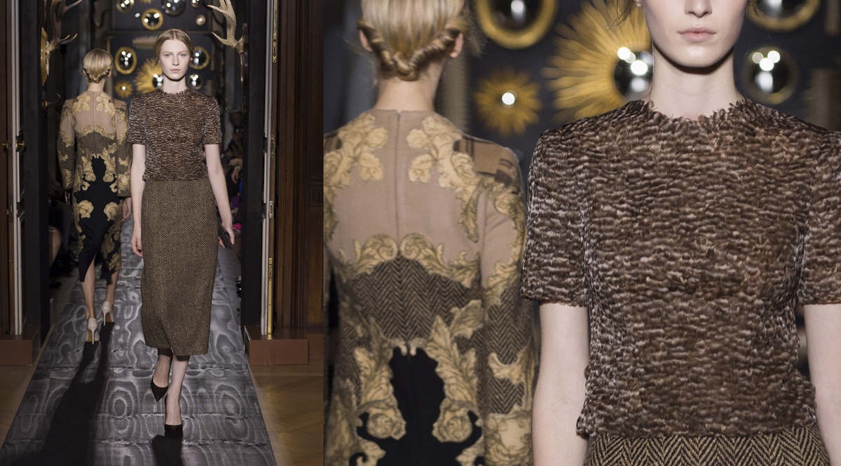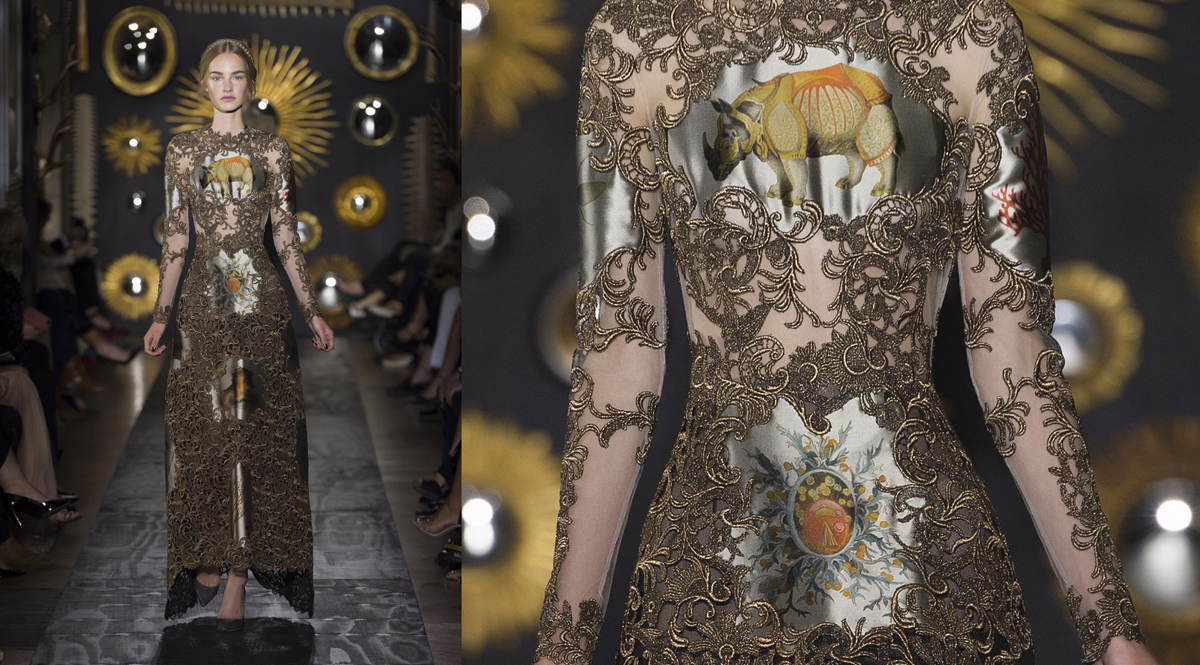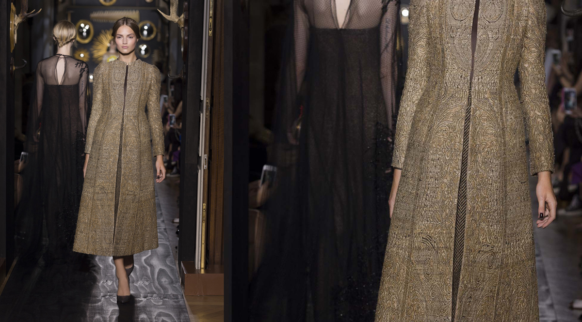 “La alta costura no es sólo para las ceremonias” insisten los diseñadores, enviando a la pasarela modelos con prendas que combinan estampas gráficas con bordados intensos y propone una utilización poco convencional de telas genéricas con géneros de lujo.