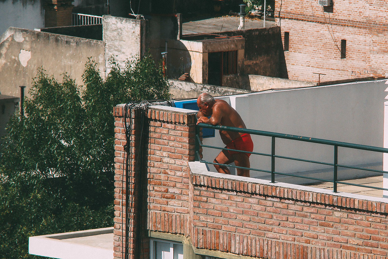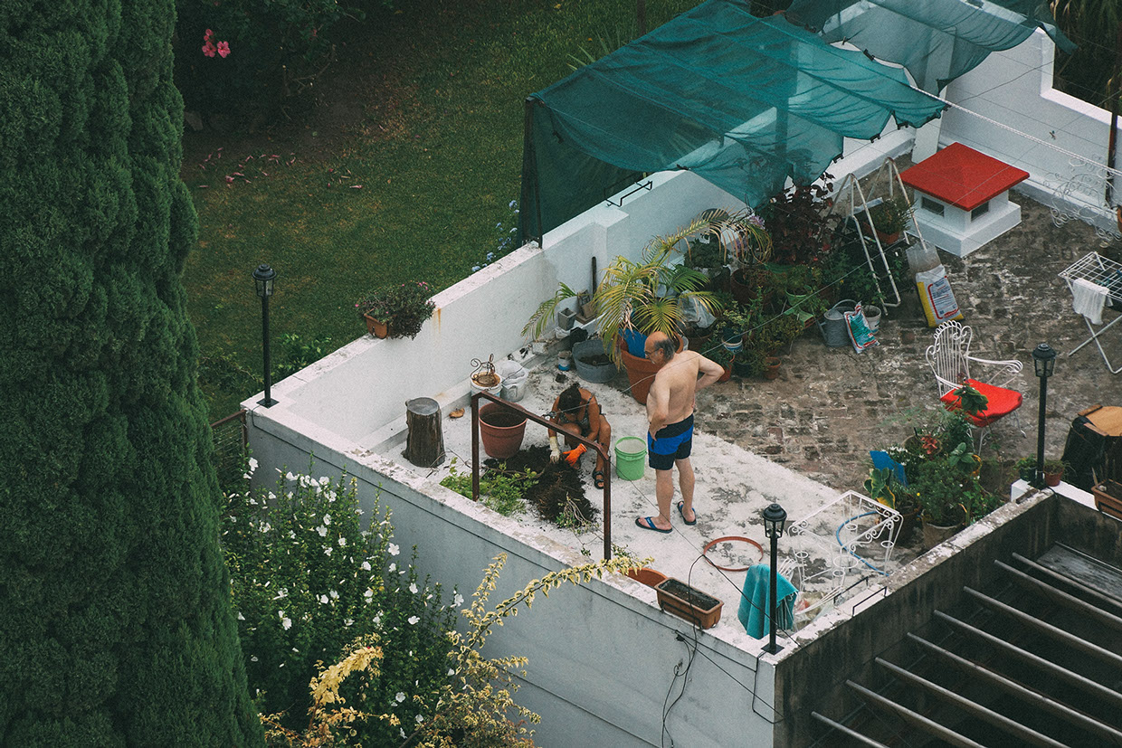 Hoy trajimos su serie “Vecinos”, que surgió de la combinación de trabajar desde su casa y tener una vista privilegiada a dos centros de manzana. Las fotos tomadas durante el verano, ahí cuando la vida cotidiana de los vecinos se muda a los patios y terrazas.