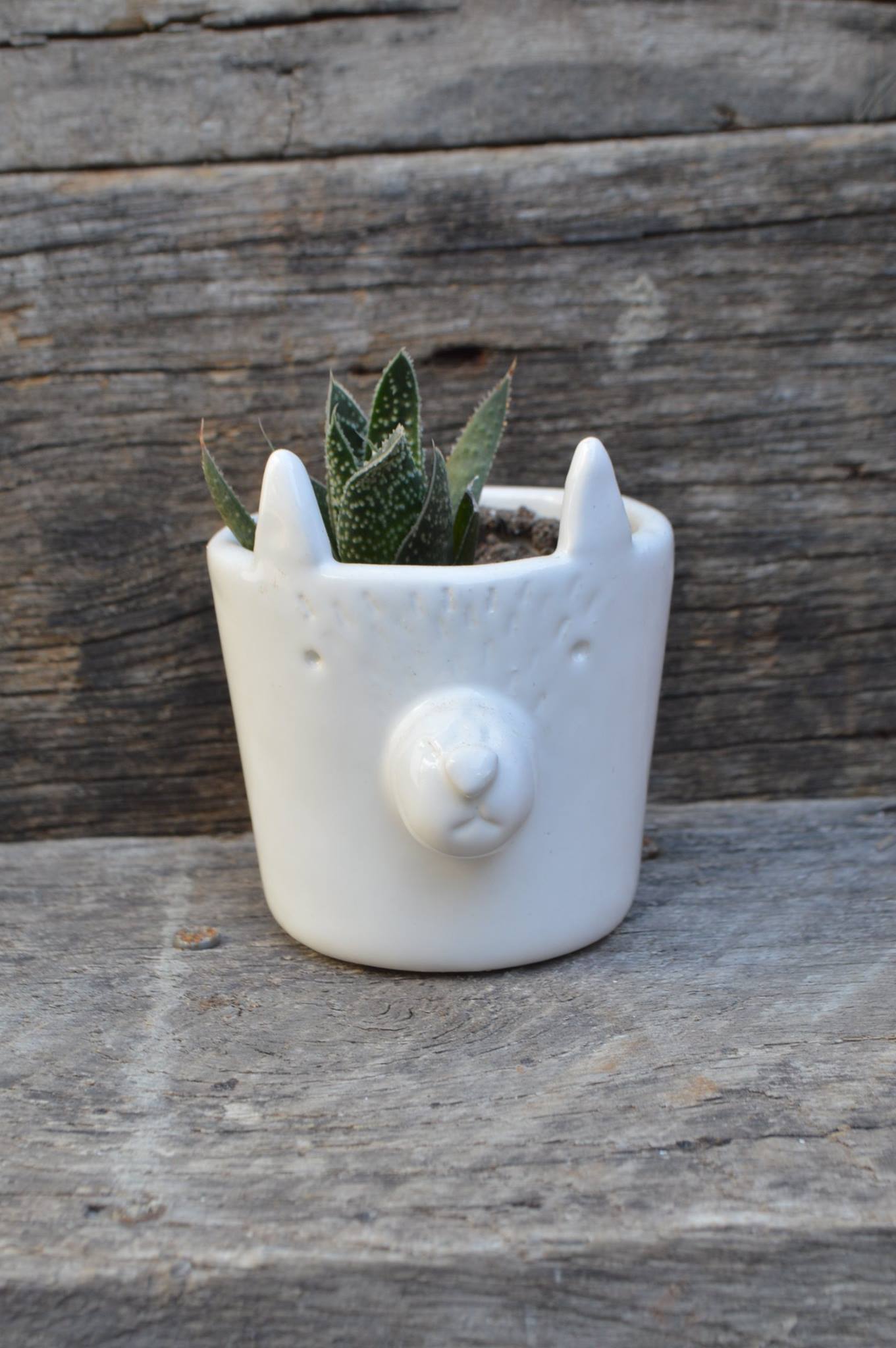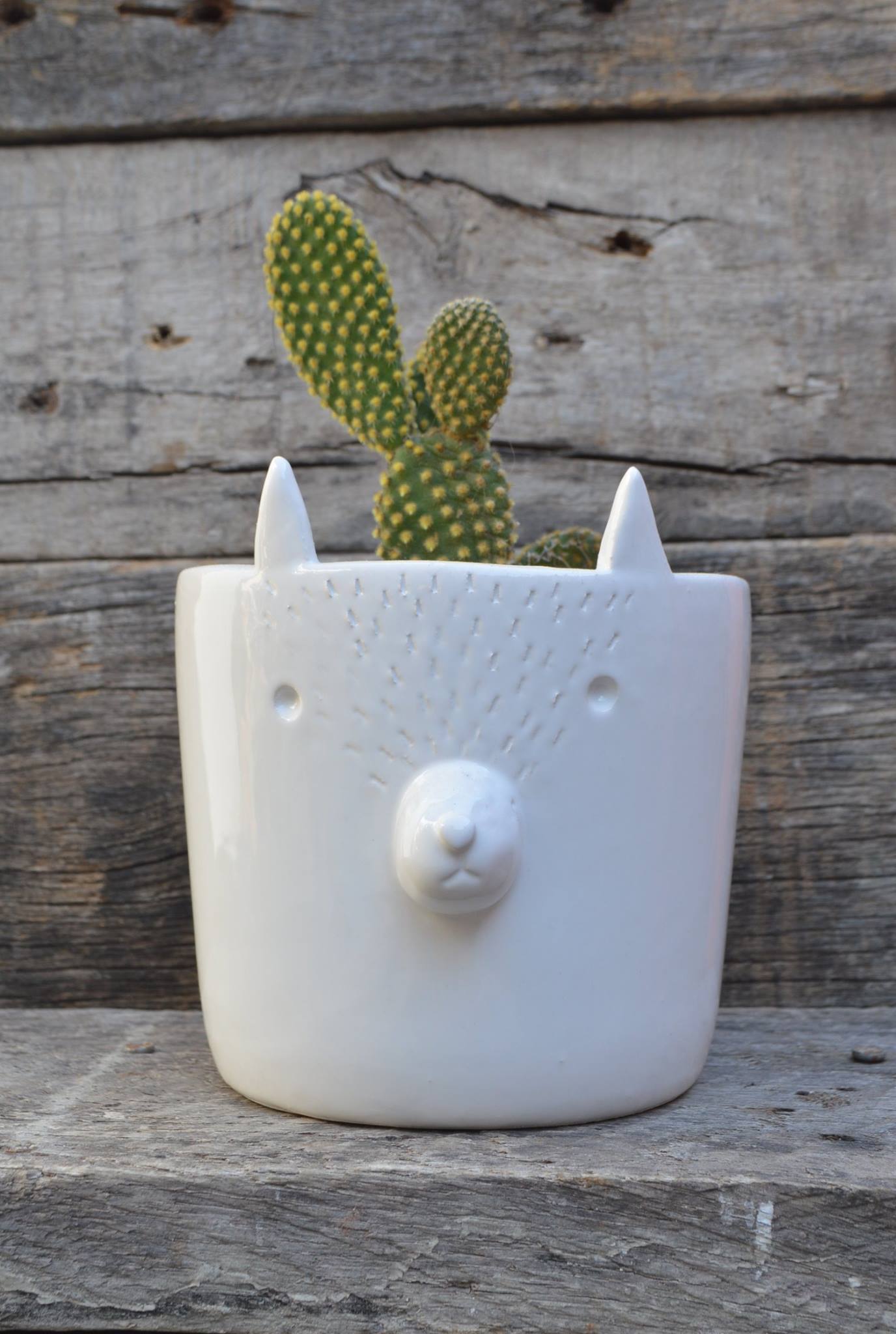 Todo arranca por el amor a los animales y las plantas, y una forma de unir esas dos cosas que a Marina tanto le gustaban. Arrancó con pequeñas macetas de suculentas de un perro, un gato y una llama que hizo para ella, que luego empezaron a gustar entre sus amigos y conocidos para crecer y convertirse en un taller de cerámica. Le siguieron una casa, osos, zorros y diferentes animales que se convierten en macetas de diversos tamaños esmaltadas en blanco, para pequeños jardines o para decorar el hogar (pueden utilizarse tanto para interior como para exterior).