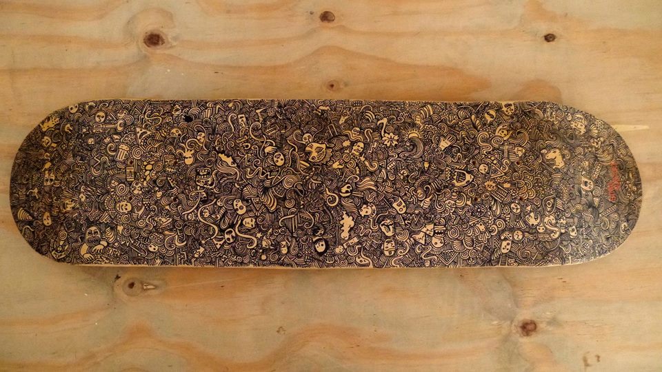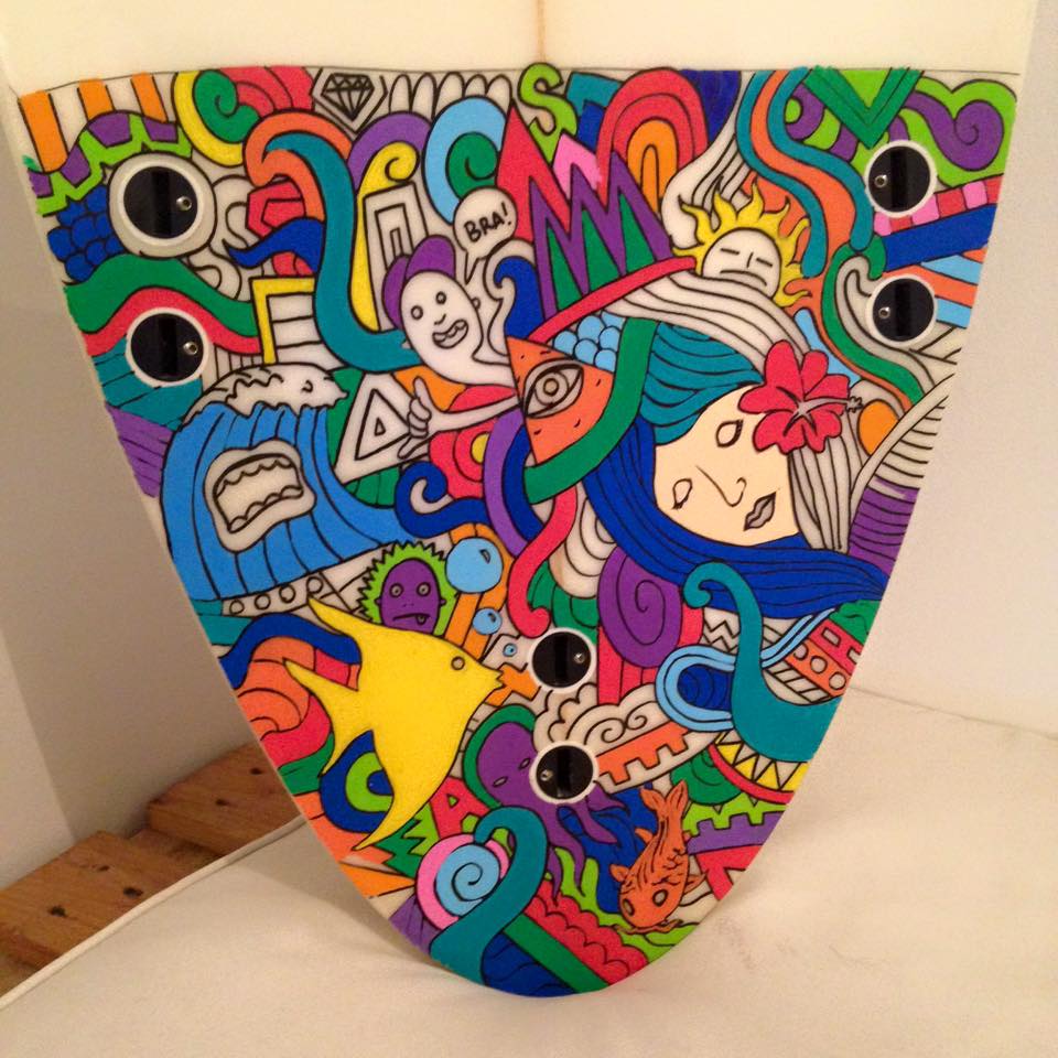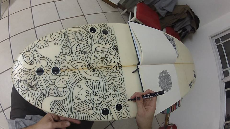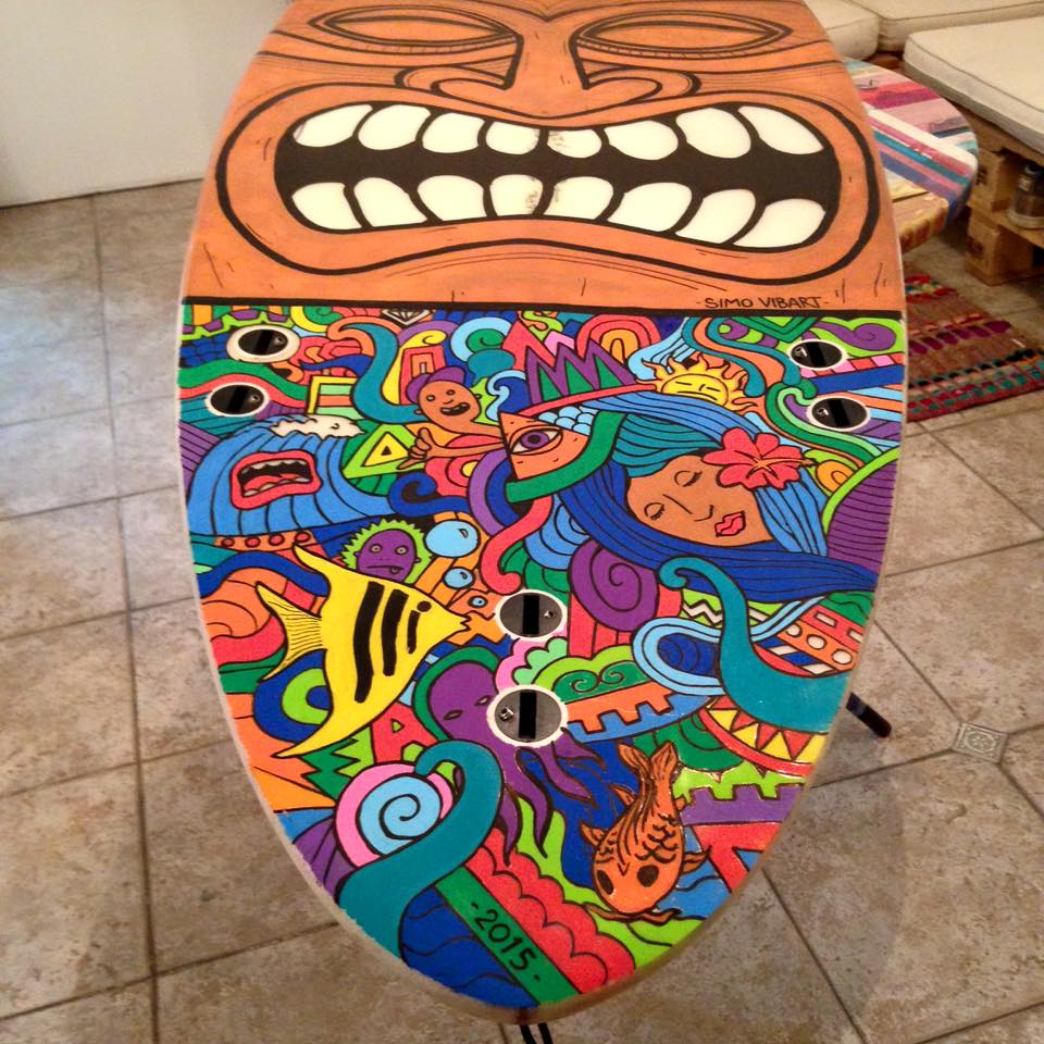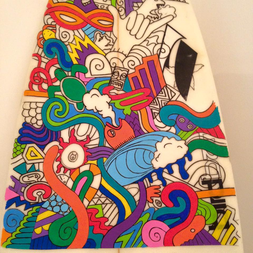 Ha logrado juntar sus dos pasiones, el surf y el arte, ya que principalmente se ha dedicado a pintar tablas y a intervenir distintos objetos relacionados con el surf y el skate.
