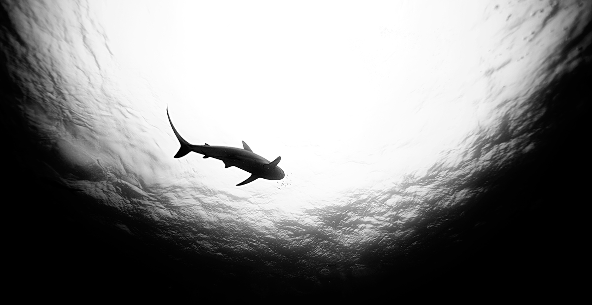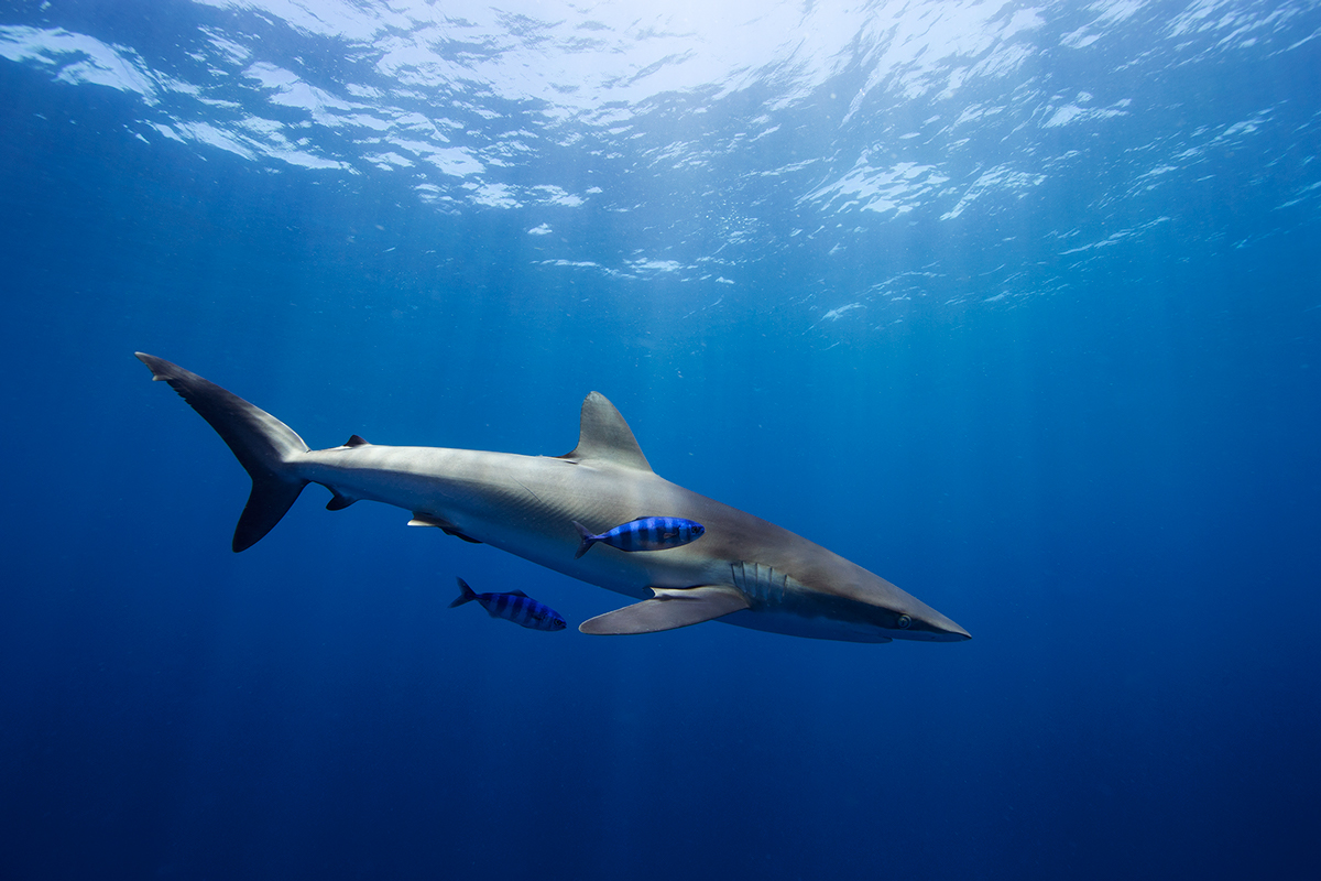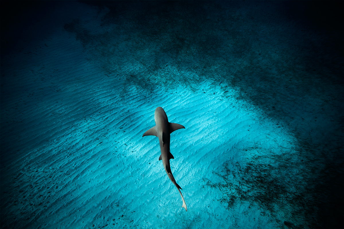 Los tiburones son su sujeto preferido a la hora de sacar fotos. Es un animal totalmente incomprendido, usualmente presentado como una criatura violenta y sanguinaria cuando que en la realidad son extremadamente elegantes e inteligentes. Para presentarlos bajo una nueva luz, Jorge intenta siempre mostrarlos como los halla en la mayor parte de sus excursiones: serenos y pacíficos, flotando elegantemente en el fondo del mar.