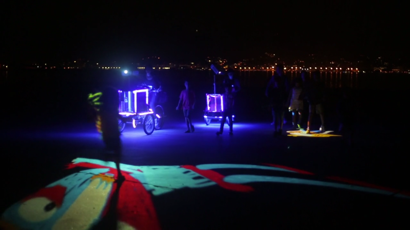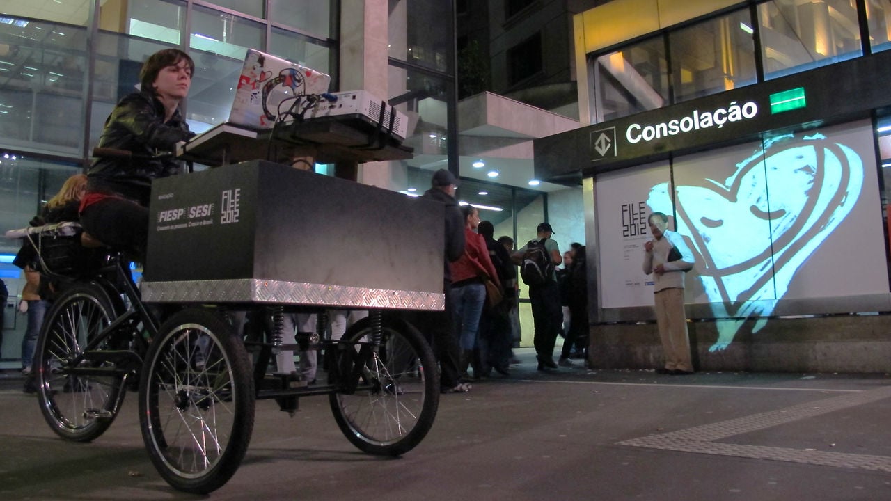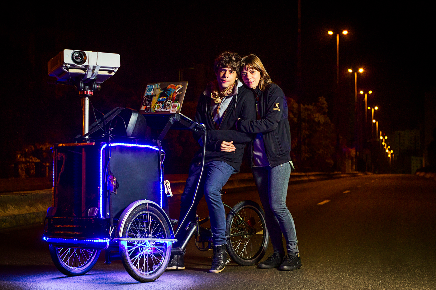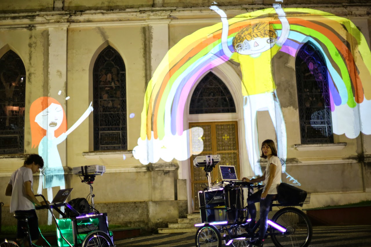 Es un dúo de VJ’s de la ciudad de San Pablo, y logra que los muros más grises se conviertan en un sueño animado. Con un sistema de bicicletas proyectoras entretienen a los transeúntes con imágenes en movimiento. Los invitamos a ir de paseo con ellos: Ygor Marotta y Ceci Soloaga, aka. VJ Suave.