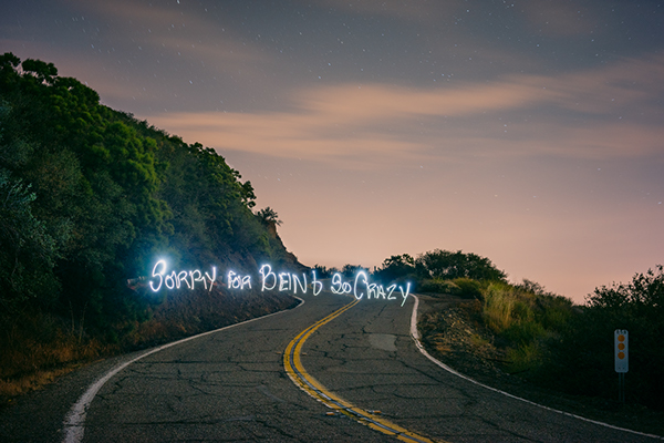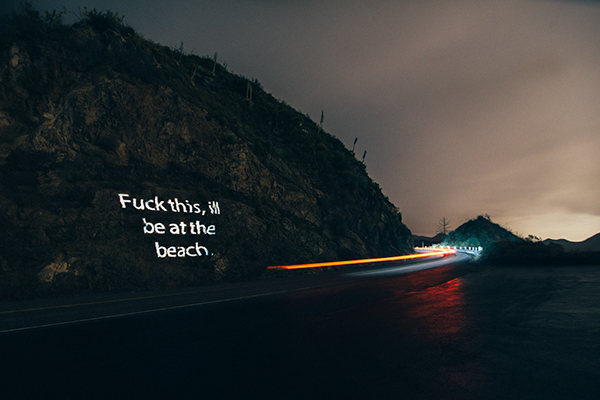 Frases y emociones pintadas analógicamente, usando juegos de luces como si fueran un pincel. Esta es la especialidad del artista basado en Los Angeles 2wenty, que toma paisajes desolados y rutas vacías para jugar con la cámara en larga exposición, sin manipulación de programas de edición de imágenes.