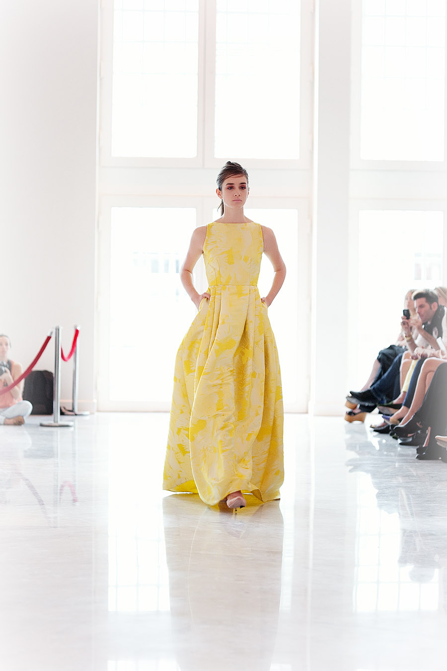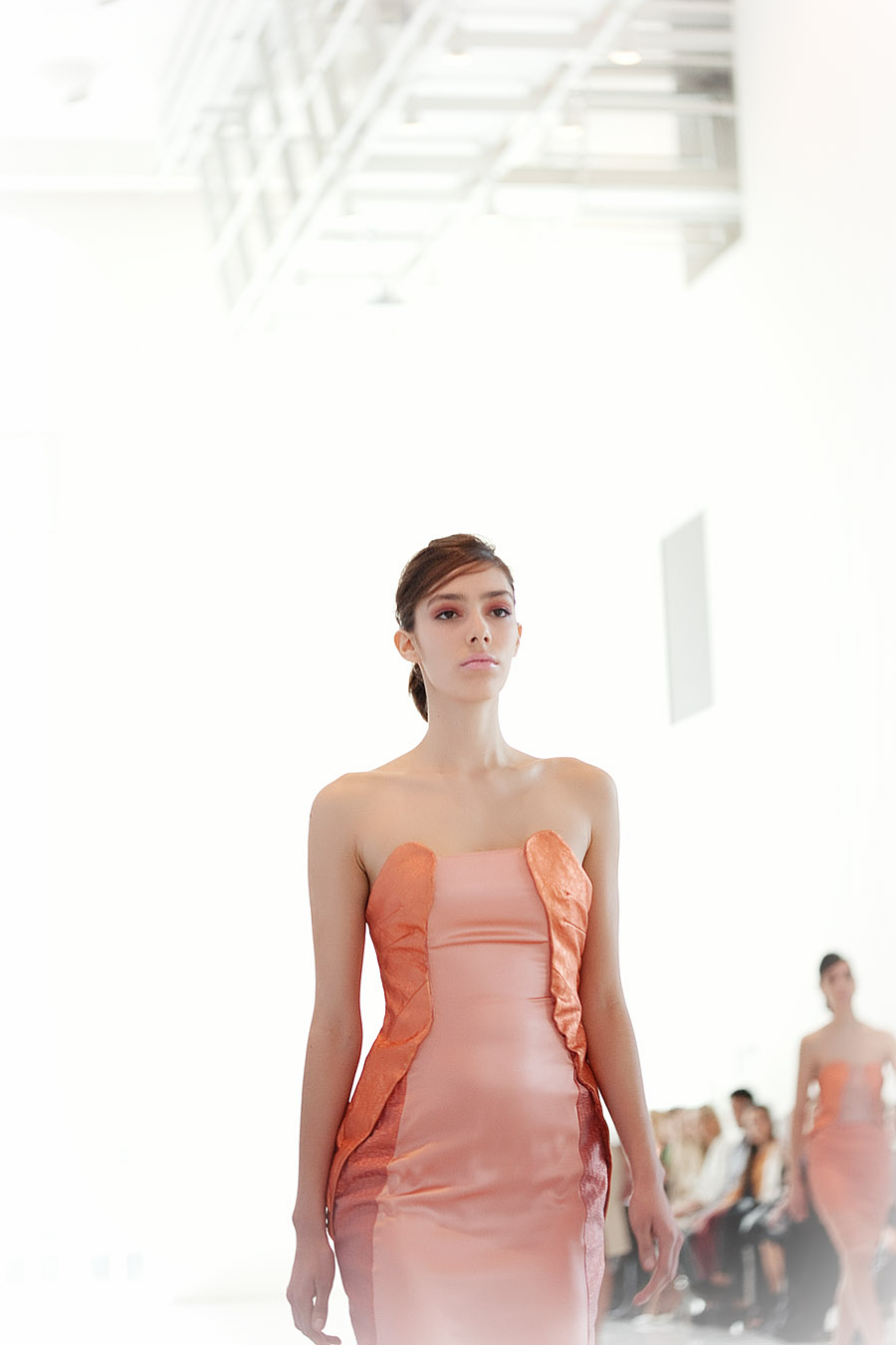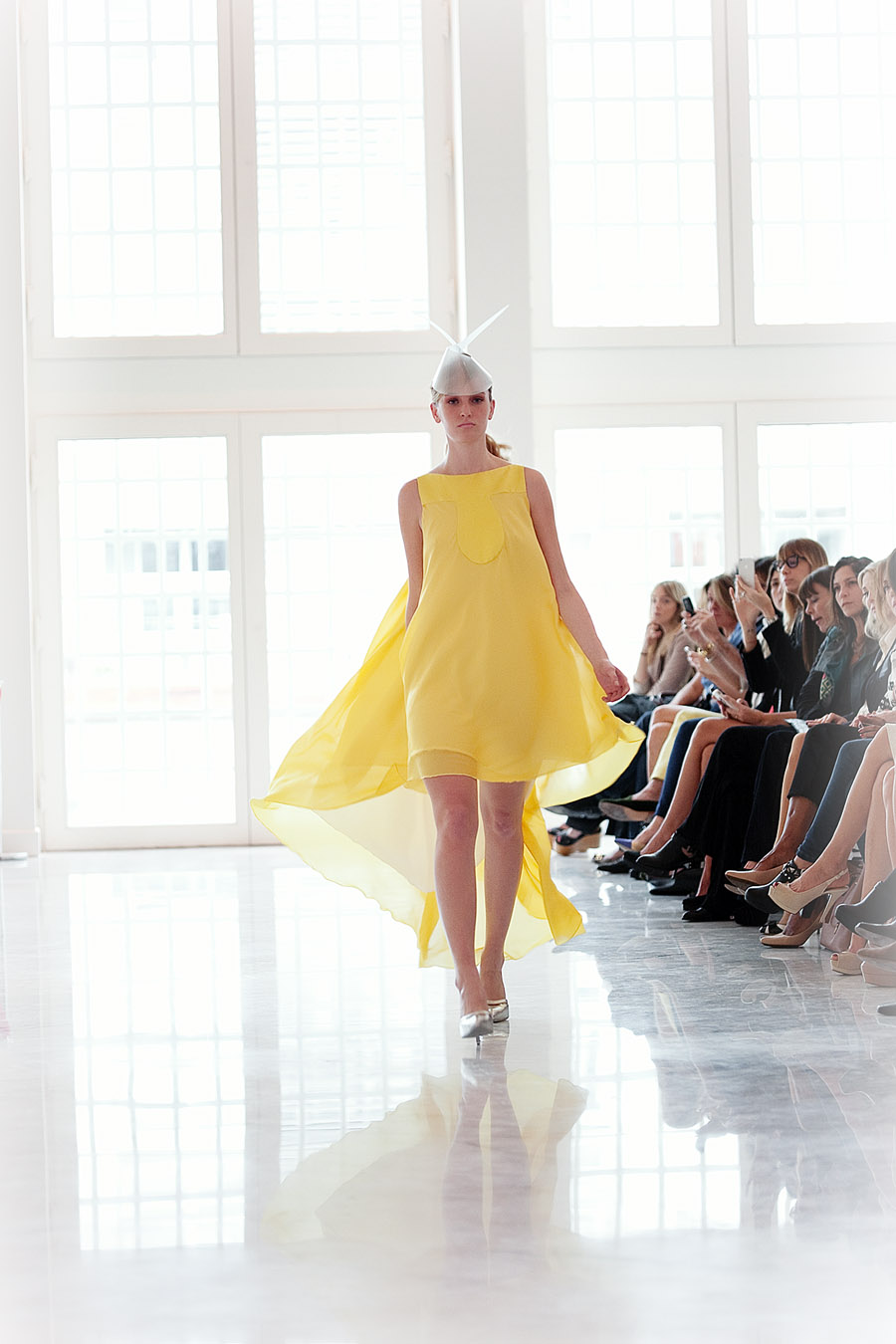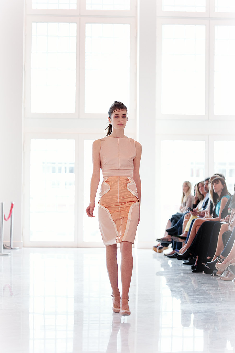 Todo es lujo: desde la etérea caída de los géneros cortados a la perfección, pasando por los pliegues hechos con maestría hasta el impecable calce de vestidos, tops y faldas que recorren, elásticos, el cuerpo de las modelos. Y la paleta acompaña, haciendo pie en el blanco y el nude y sumando suaves toques de plata, cobre y oro hasta llegar a prendas en tonos durazno y un furioso amarillo.