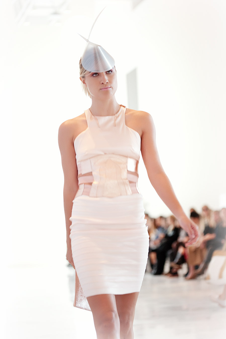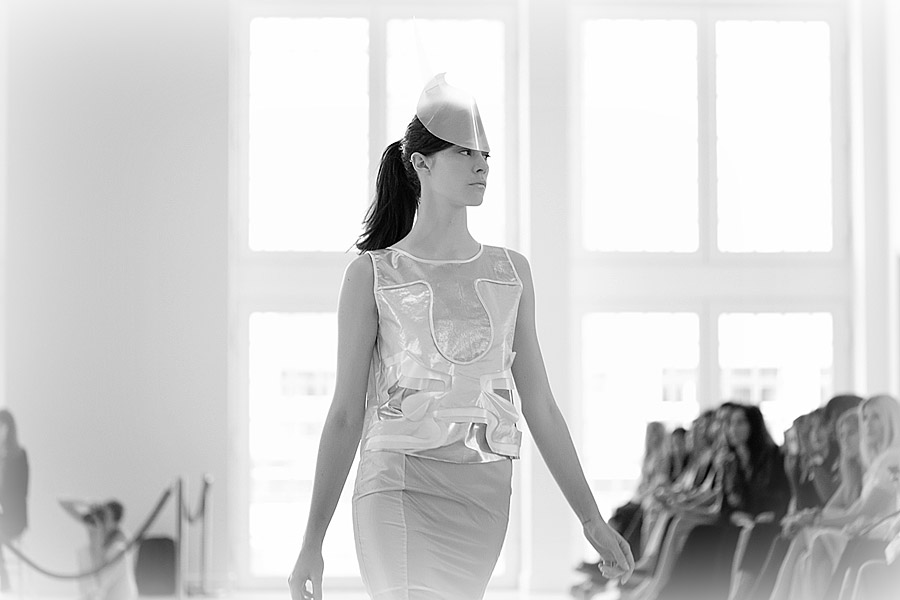 Influenciada en los trabajos de la arquitecta anglo-iraquí Zaha Hadid, la propuesta retoma el deconstructivismo y sutileza que caracterizaron su obra con una serie de prendas que en suaves volúmenes y diagonales futuristas que se cruzan con curvas orgánicas construyen una colección fabulosa por donde se la mire.